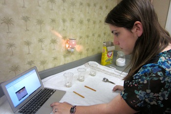 Abby sets up her lab in our laundry room. She follows the video and gets ready to roll.